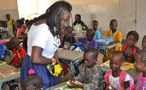 Fatou, membre de Xaleyi, auprès d'écoliers sénégalais. Photo (c) Xaleyi. Cliquez ici pour accéder au site officiel