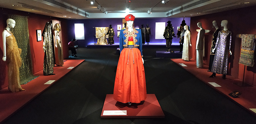 Dans les allées où les tenues sont présentées sur des mannequins longilignes, l’ambiance est feutrée. On ne parle pas, on susurre. Une atmosphère probablement due à l’éclairage tamisé, destiné à protéger les tissus précieux de la chaleur d’une lumière trop vive. "L’exposition est divisée en quatre parties: l’Inde, la Chine, le Japon et un dernier espace consacré au parfum Opium" annonce notre guide.
