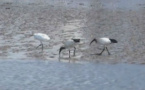 "L'ibis sacré, Threskiornis aothiopicus, le dieu Thot des anciens égyptiens, se rencontre maintenant dans l'estuaire de la Loire où le climat semble lui convenir. Introduit accidentellement, dans la région ouest de la France, il y a une vingtaine d'années, il pêche à loisir à marée basse en fouillant avec son bec recourbé, la vase où vers et crustacés abondent."