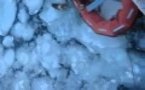 L'équipage du bateau "Baltica" a réussi enfin à porter secours au chien, après plusieurs tentatives car il glissait dans l'eau et remontait péniblement sur la glace.