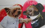 Il faut préciser que Lola, 6 ans, est une chienne yorkshire terrier et son époux Mugly, un Shitzu-Chinese Crested cross, a été considéré comme le chien le plus laid du Royaume Uni en 2005. Louise Harris était fort bien placée pour réaliser ce mariage qui a quand même nécessité tois mois de préparatifs. Elle dirige en effet un salon de toilettage et une boutique de vêtements et accessoires pour chiens. Elle avait organisé un concours sur sa page facebook pour trouver un mari digne de Lola. Des centaines de messages sont arrivés, 6 ont été retenus dont celui de Mugly, ce dernier s'est tout de suite très bien entendu avec Lola. "Mes chiens sont ma joie et ma raison d’être, rien n’est donc trop bon pour eux" a conclu Louise Harris qui n'a pas hésité à dépenser 23000€ pour cette noce dont 540 pour le buffet des chiens. On attend avec impatience la première portée...